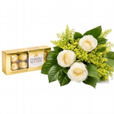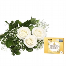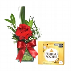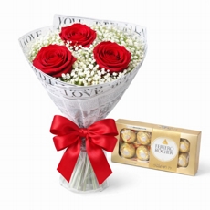 3 Rosas Nacionais Vermelhas com Ferrero Rocher