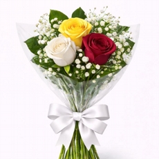 Buquê Estilo 3 Rosas Nacionais Coloridas