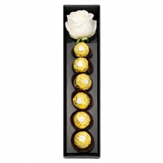 Box com Rosa Solitária e Bombons Ferrero Rocher Branca