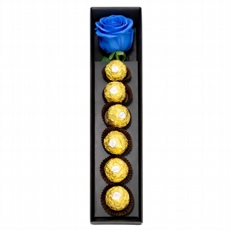 Box com Rosa Solitária e Bombons Ferrero Rocher Azul