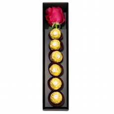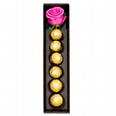 Box com Rosa Solitária e Bombons Ferrero Rocher Rosa