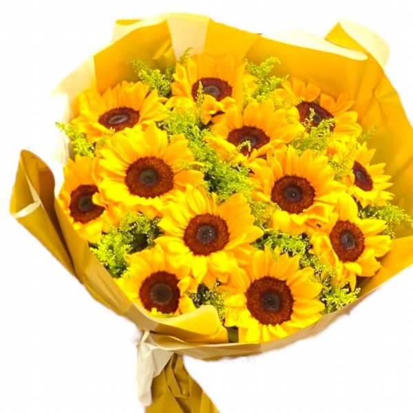 Buquê 12 girassol.Embalado papel kraft com laço de fita.
