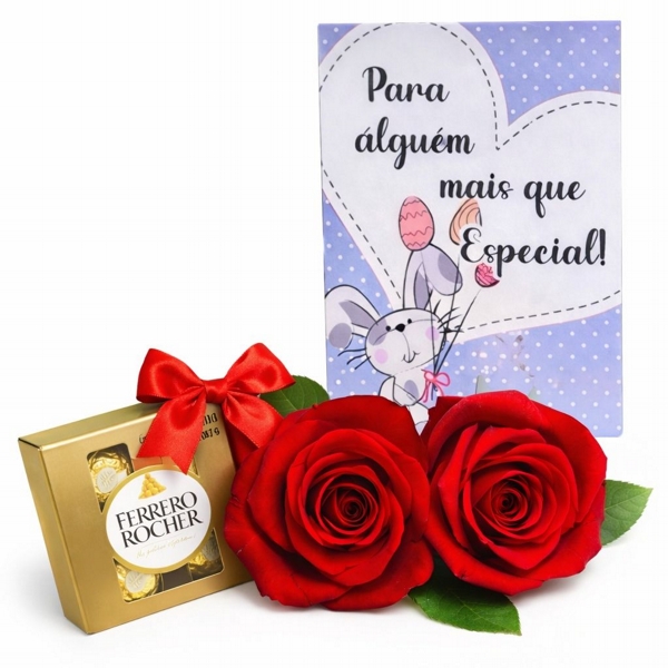Duas Rosas Colombianas cheia de significado com ferrero rocher ( 4 unidades) irresistível acompanha cartão para deixar tudo ainda mais especial